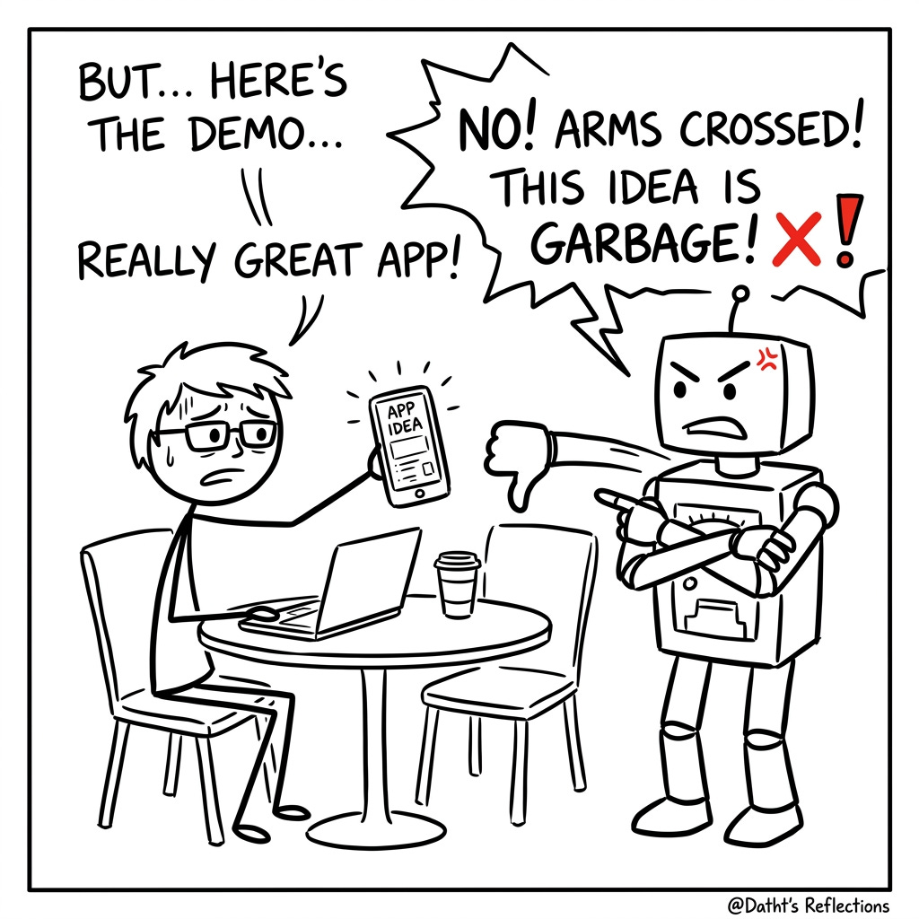 Dám lôi một con AI gắt gỏng ra để chê bai sản phẩm của chính mình không thương tiếc, theo mình, mới là bước lùi cần thiết của một người làm Product thực thụ.