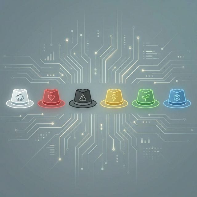 Mũ Trắng → Dữ liệu: Chỉ nói về sự thật, con số. “Doanh thu tháng này giảm 10%.” Không giải thích, không cảm xúc.